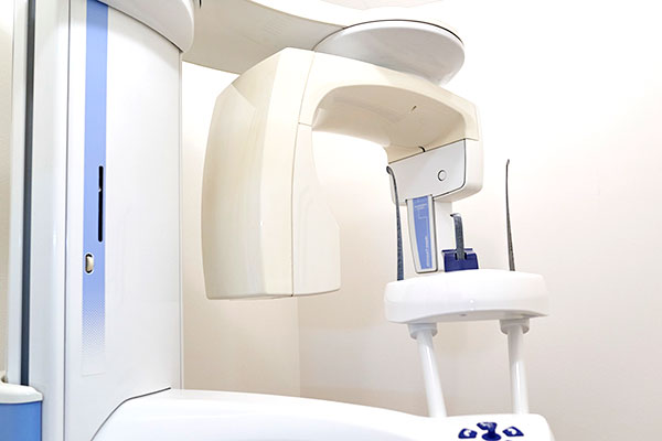 お口全体の歯の状態や、顎の骨の様子を一枚のレントゲン画像に撮影する装置です。むし歯や歯周病の進行状況だけでなく、親知らずの状態や、将来的なかみ合わせのリスクなどを総合的に判断するために活用します。