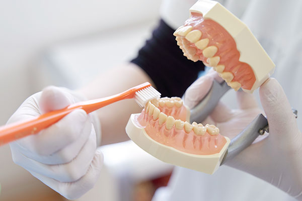 歯周病の原因は、日常の飲食などの磨き残しから発生する歯垢(の中で増殖する細菌)なので、歯科医院でクリーニングを受けていても、日々の磨き残しがあれば歯周病は進行してしまいます。そこで当院では、患者さまのお口の環境や生活習慣に合わせた「ブラッシング指導」を重視しています。どこに磨き残しが出やすいかを丁寧にチェックし、最適な歯ブラシの動かし方をお伝えします。ご自身で「守る力」を身につけていただくことが、最大の予防になります。